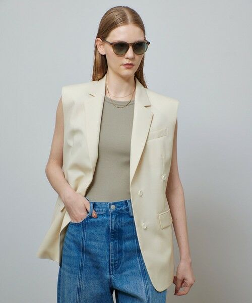 モヘヤ混の薄手ウール素材で仕立てた、2WAYジレ。