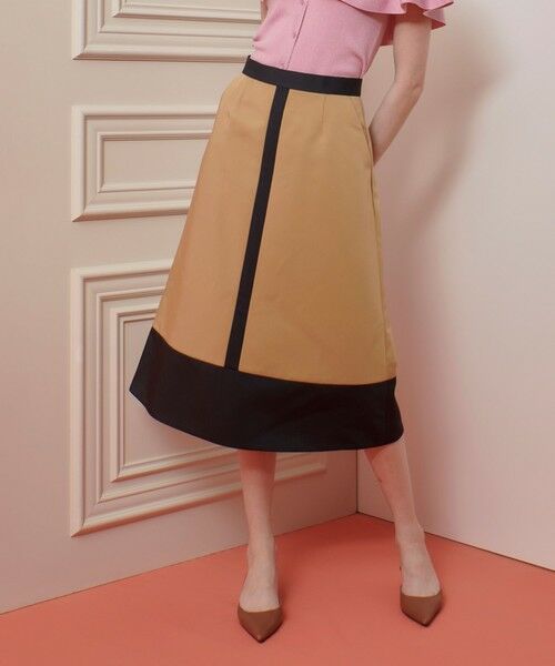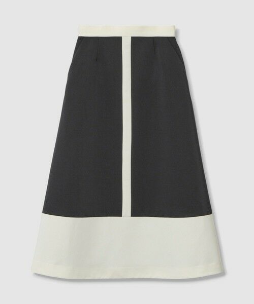Aラインのすっきりとしたシルエットのスカートをウエスト、裾、前立てで切り替えてバイカラーに仕立てています。