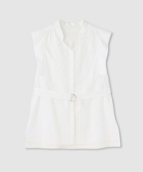 クールな襟元や別素材のコットンサテンの切り替え袖、メタルバックルのベルトで、マニッシュでトレンド感のある一枚に。