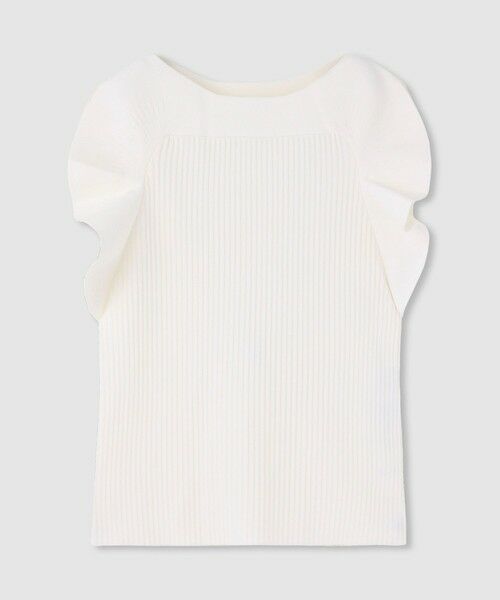 デコルテから肩にかけて大胆にラッフルをあしらったプルオーバー。