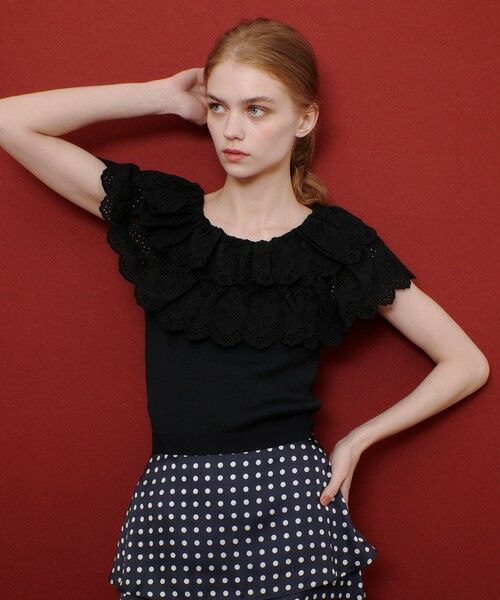 贅沢にあしらわれた太巾のコットンレースが印象的で、小顔効果も期待できる一枚です。