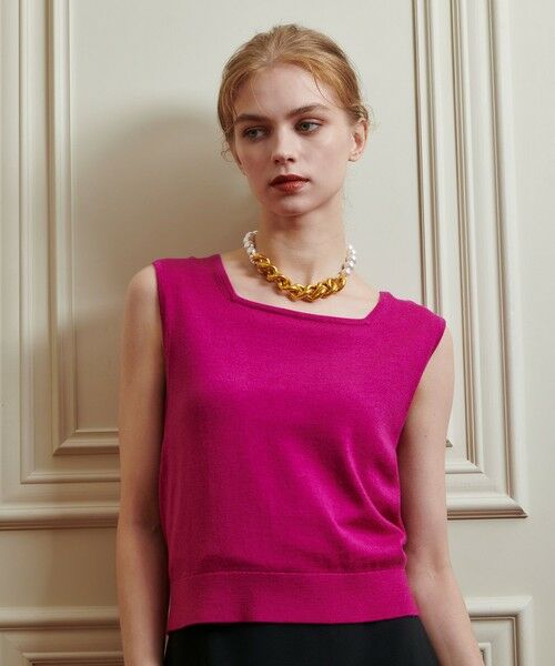 胸元はスクエアネックですが浅めの開き方で一枚で着用してもインナーらしさはなくしっかりとトップスとしても活躍する一枚。
