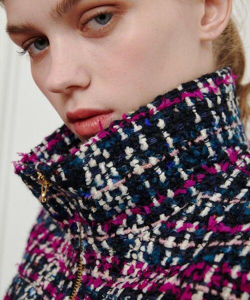 ショートブルゾンなので、脚長に見せてくれ、ツイードアイテムでもカジュアルダウンしてお召しいただけます。