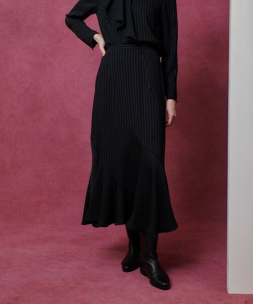 とろみのある落ちの良いストライプ生地はしなやかなドレープが女性らしく上品な印象の生地です。