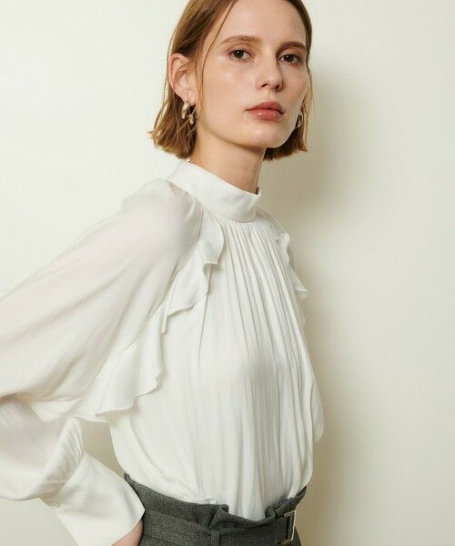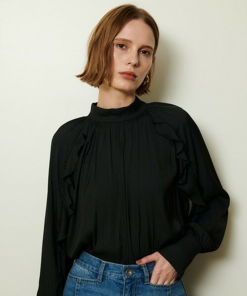 ラグランスリーブになっており、甘くなりすぎない柔らかさの残るフリル感がデザインポイント。
