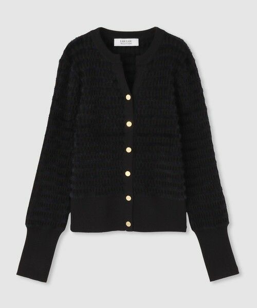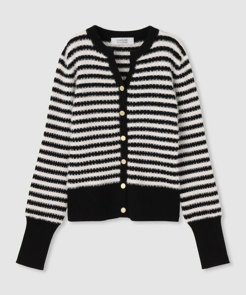 【LOULOU WILLOUGHBY 2025 autumn&winter】柔らかなフェザーヤーンを使用したボーダーカーディガン。ふんわりとした風合いが女性らしいやさしい印象を与えます。コントラストの効いた配色デザインとゴールドボタンがアクセントになり、羽織るだけでコーディネートを華やかに。デイリーにはもちろん、ちょっとしたお出かけにも活躍するアイテムです。【スタッフコメント】カーディガンとしてもトップスとしても重宝する1枚です。とても柔らかく肌触り抜群ですが、ノンウールなのでご自宅で手洗いしていただけます。近くで見るとボーダー模様になっています。すっきりとしたシルエットで、リブニットほどボディラインを拾わないのが嬉しいポイント。前のボタンを開けて羽織としても使える優秀なアイテム。Vネックの開きが大き過ぎない為、前屈みになっても安心の一枚です。※手洗い可能です※照明の関係により、実際よりも色味が違って見える場合がございます。またパソコン・スマートフォンなどの環境により、製品と画像のカラーが異なる場合もございます。予めご了承ください。