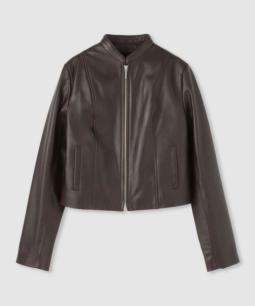 柔らかい風合いで、美しい光沢感が上品なシープスキンを使用した、すっきりとコンパクトなシルエットのスタンドカラーのライダースジャケット。