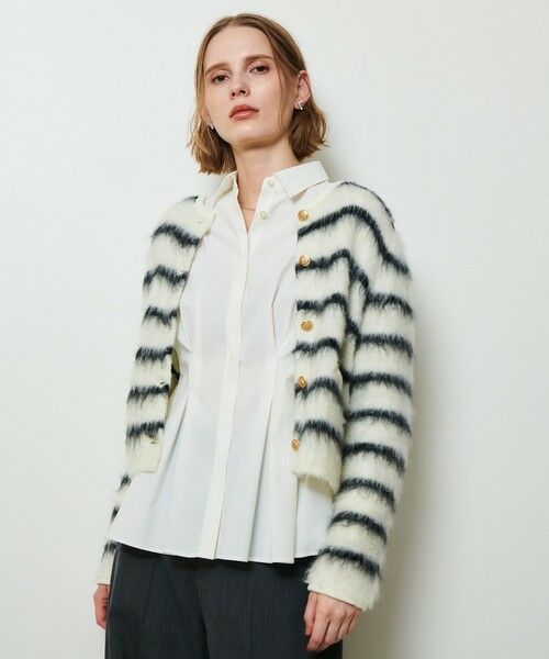 ブークレーヤーンを編んだ後ブラッシュ加工で毛足を出した、キャッチーでリッチな見た目のニットJK。