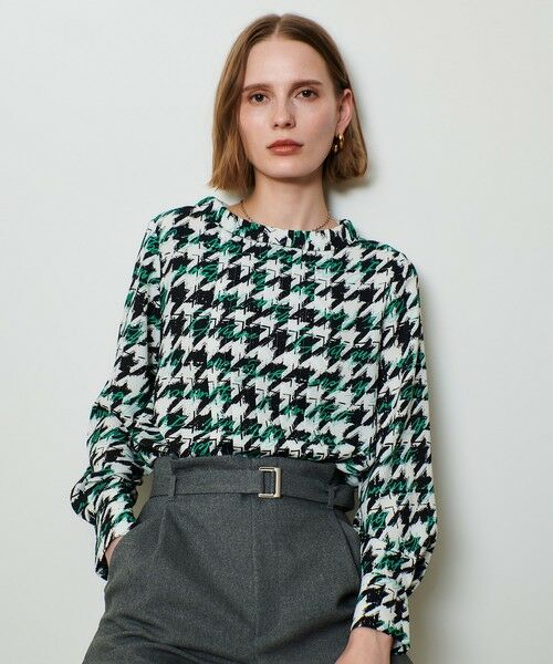 トラディショナルなチドリ柄に、レタードを組み合わせたオリジナルプリントが印象的なブラウス。