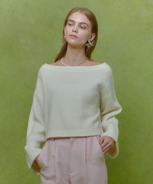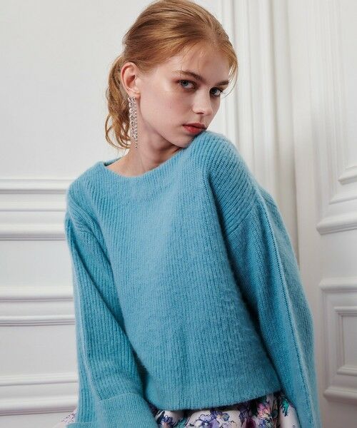 カシミヤをブレンドしたメリノウールをふんわりと編み上げ、仕上げに風合いを出す加工をして膨らみと温かみをプラス。風合いを活かしてふわりと抜け感あるシルエットを思い切った短丈に。ふんわりスカートに好バランス。