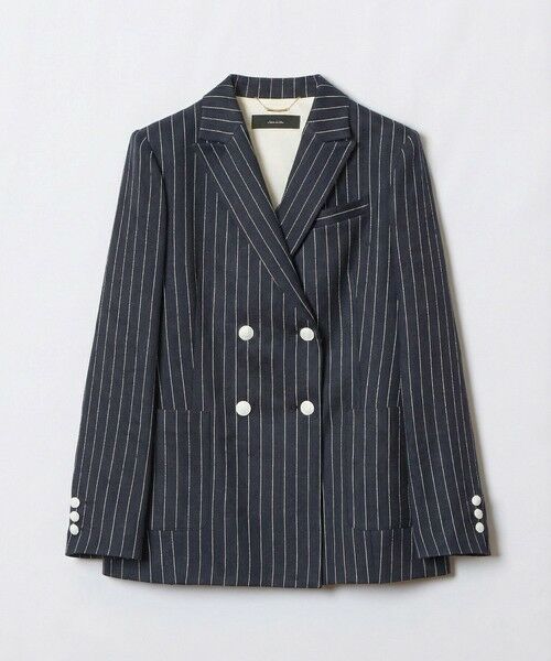 【allureville 2026 Spring & Summer】ポルトガルのリオペル社の素材を使用したJKです。オーソドックスなストライプですが、インポートならではの風合いと雰囲気があるジャケットです。魅力的なきじなので、トラッドなジャケットに落とし込み、クリーンな印象を与えるホワイトの塗装の釦を使用してまして、こなれた高級感のあるスペシャルなJKです※照明の関係により、実際よりも色味が違って見える場合がございます。またパソコン・スマートフォンなどの環境により、製品と画像のカラーが異なる場合もございます。予めご了承ください。