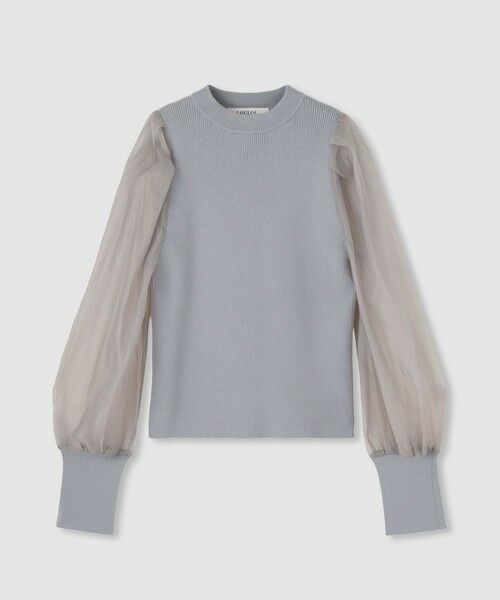 シアーな素材の立体的なタックパフスリーブをドッキングしたニットプルオーバー。