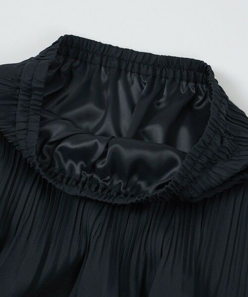 ウエスト付近はクリスタルプリーツが施されていますが、裾部部にはアコーディオンプリーツがかけられています。2種類のプリーツがかかった新しいプリーツの手法です。ウエストはALLゴム仕様になっているのでストレスフリー。カラーはシンプルにベージュとネイビーの2色展開です。
