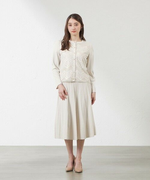 さりげないアイレット柄が涼し気なプリーツ風のフレアラインが美しいニットスカートです。(裏地付き)