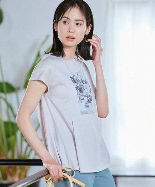 フレンチスリーブのチュニック型のデザインで、パンツとのスタイリングがお勧めです。身頃に取られたタックは胸下から離れ、ペプラムシルエットになっており、女性らしいシルエットを演出し、体型カバーやスタイルアップが叶います。