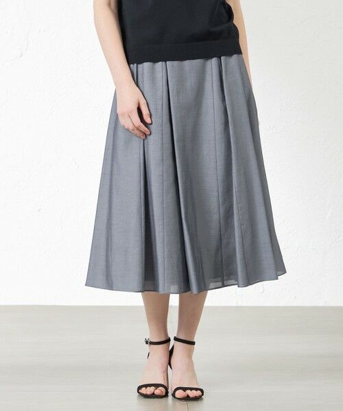 シャルマンダンガリーフレアスカート【デザイン】はめ込みのフレアシルエットのミドル丈スカートで、裾に向かって広がるシルエットが美しく見せてくれます。ウエスト部分はスッキリしているので、腰回りがキレイに着ていただけます。トップスインでもアウトでもキレイに着こなしていただけるアイテムになっております。【素材】タテ糸に再生繊維(セルロース)を使用することで肌離れするさらっとした素材に仕上がっています。シーズンレスで着て頂ける素材感が特徴で、色々なアイテムと相性が良いので沢山着まわしていただけます。※手洗い可能でお手入れしていただきやすくなっております。