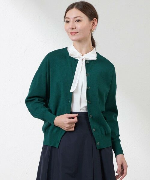 セルロースの柔らかさと光沢感を持ちつつ、天然繊維のウールを加えることで膨らみのある素材感に仕上げており、手洗い可能な素材でありながら年間の多くを着用できる素材感となっております。