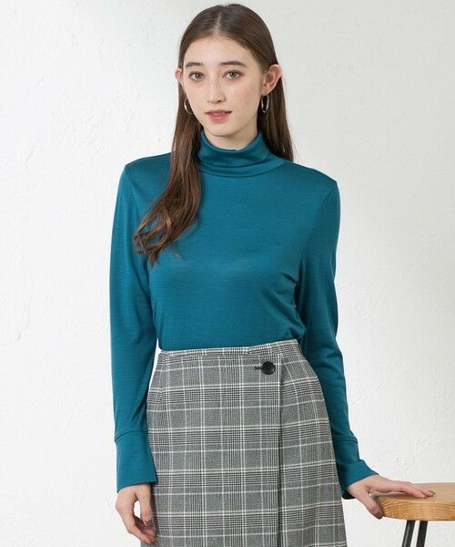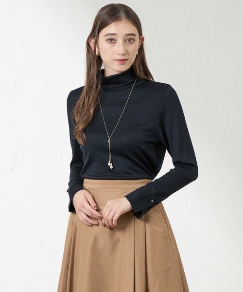 ウール100%のコーディネートの幅を広げてくれるハイネックカットソーです。折り返した後襟にはスリットが入っており、バックスタイルのデザインポイントになっています。