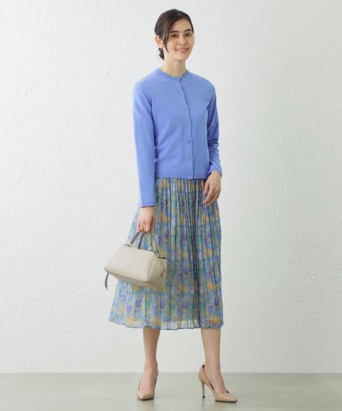 AMACAのスタンダード、ベーシックな丸首カーディガンです。衿裏と釦付け糸が配色になっています。同素材のプルオーバーニット(V5N10128)と合わせてアンサンブルの着用がおすすめです。