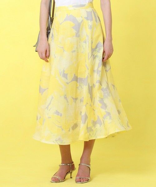 vacationロゴプルオーバー 伸縮性もあり、柔らかな着心地のノースリブニット。 身頃は接触冷感素材で涼やかに着れます。 程よい光沢感と、さりげないロゴで大人っぽい印象になります。 ゆったりしているため36サイズを着用しています。 手洗い可。 transparent プリントリネンスカート 大ぶりな花柄が印象的なスカートです。 薄手のリネン素材で、裾に向かって広がるマーメイドシルエット。 ウエストはベルト切り替えを施し腰まわりもすっきりと見えます。 ニットを合わせたキレイめなスタイリングがオススメです。 スタッフ 164cm ニット着用 36 スカート着用 36