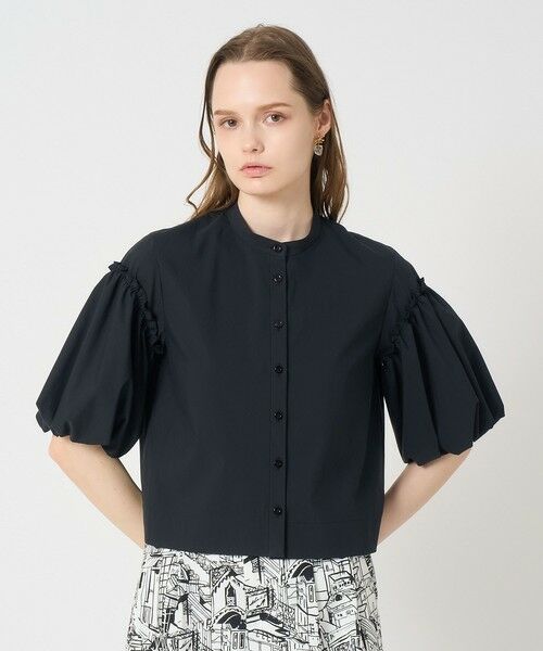 バルーンの上端はフリルのデザインで程よい甘さをプラスいています。ショート丈でウエストアウトでバランスよく着用いただけます。