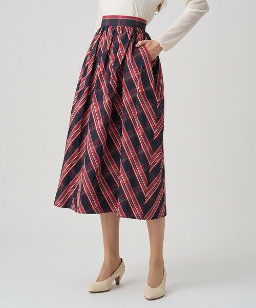 脇のポケットを立体的なパターンで作ったギャザースカートです。