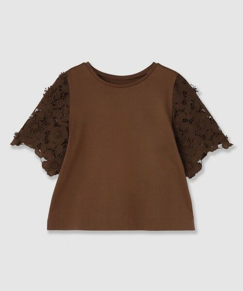 【着用感・生地の厚さ】袖部分は3Dレース刺繍、身頃はライトポンチカットソーのコンビ