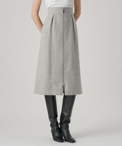 <フェザーバングル プルオーバー> 袖口のフェザーがポイントの、シンプルなニットです。 ややゆったり目なシルエットで、着心地もいいです。 着丈は腰骨くらい。インでもアウトでも、バランス良く着ていただけます。 <グレンチェックタイト スカート> 柔らかい色合いが、好印象なタイトスカートです。 ウエスト位置は高めで、太めのベルトですが圧迫感はあまり感じません。 これからの季節に嬉しい、暖かい素材感になってます。 スタッフ 157cm
