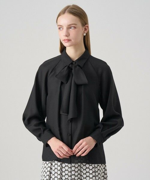 袖口タック入りでややボリュームのあるラグランスリーブに、リボンを付けて華やかに仕上げました。
