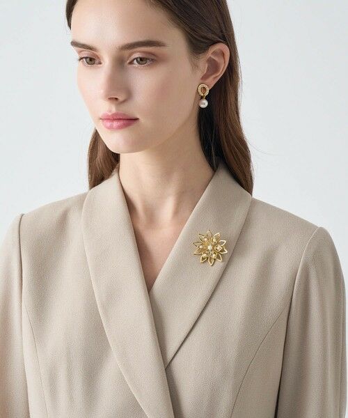 立体的なフラワーモチーフにが重なり合ったオープンワークの軽やかな印象のブローチ。