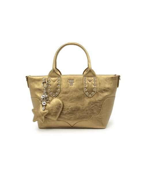 スタッズのように並んだドットデザインが印象的なボディには、星とハート、メタルボールを組み合わせた存在感あるチャームが付き、バッグを持つたびに揺れるきらめきが気分を高めてくれます。
