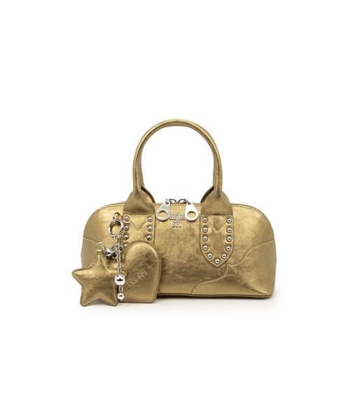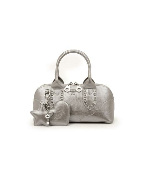 スタッズのように並んだドットデザインが印象的なボディには、星とハート、メタルボールを組み合わせた存在感あるチャームが付き、バッグを持つたびに揺れるきらめきが気分を高めてくれます。