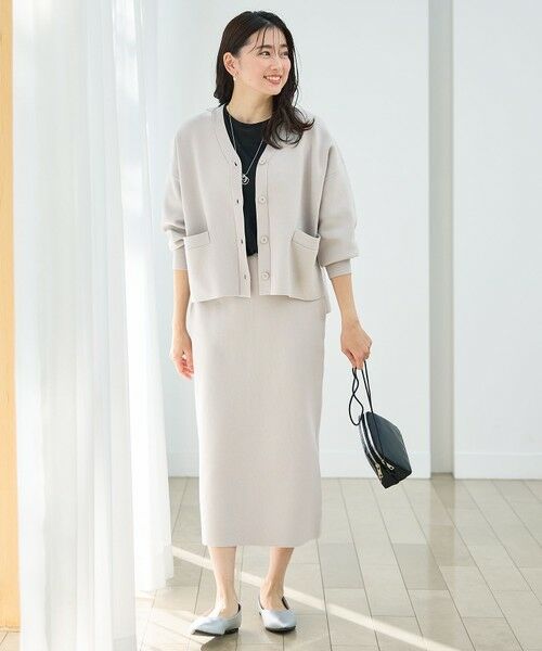 ・シンプルなストレートラインのニットスカート・ヒップ巾よりも裾巾を少し大きめにすることで、ヒップのラインを目立ちにくくするこだわりのシルエット・ニットスカートなので動きやすく、穿き心地も抜群