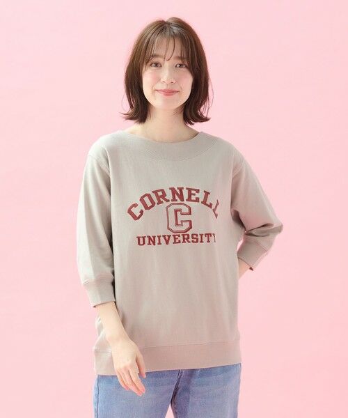 カレッジロゴ刺繍がポイントの、6分袖スウェット