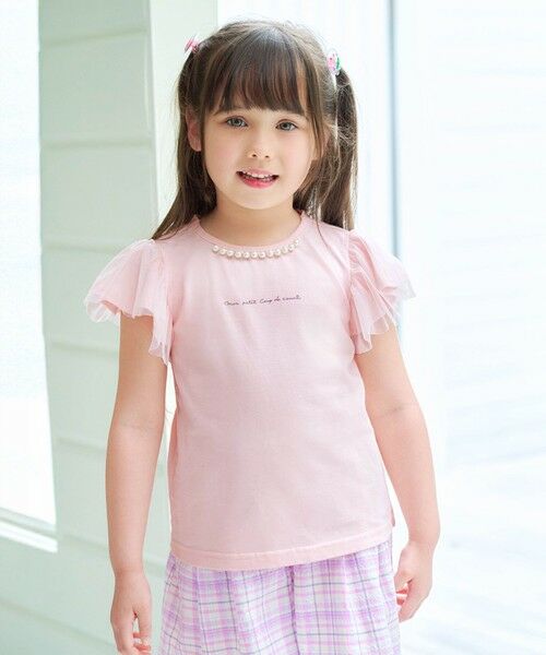 キッズ/接触冷感/Tシャツ/綿/チュール/パール/通園/通学/人気/デイリー/おでかけ/女の子/ガール/サスティナブル商品/コスパ高/トレンド/プチプラ/サスティナブル