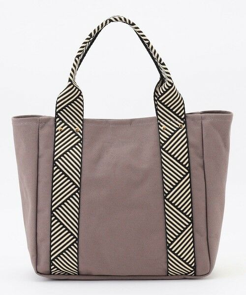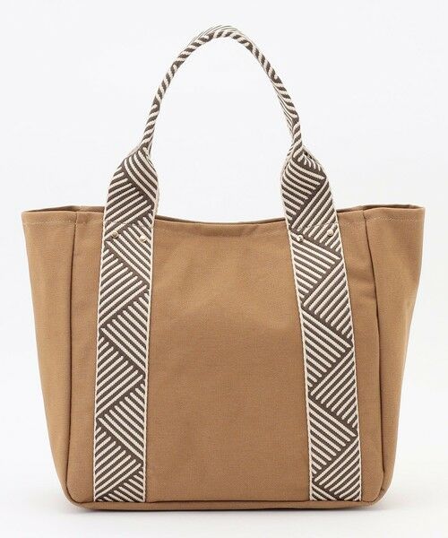 デザイン・ニュアンスカラーのキャンバス素材と夏らしい柄テープのコンビがポイント・内側にペットボトルや折りたたみ傘が収納可能なサイドポケットと、小物の収納に便利な吊りポケットつき・底マチがしっかりあることで荷物をしっかり収納でき、バッグが倒れにくく安定感のあるシルエット