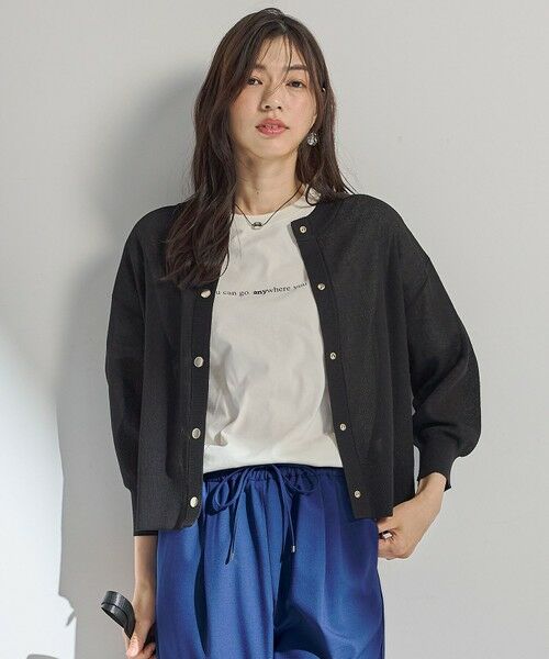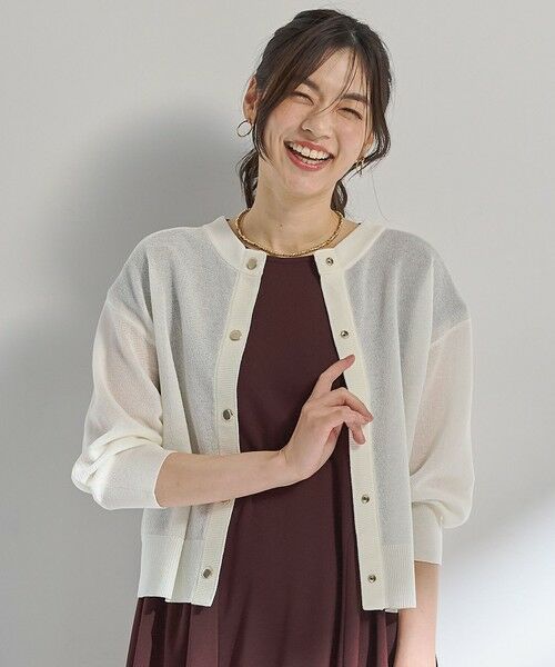 any FAM/any FAM/any fam/エニファム/エニィファム/シアーカーディガン/ショートカーディガン/ドットボタンカーディガン/透け感/シアーニット/軽量カーディガン/きれいめカジュアル/抜け感コーデ