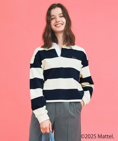 今っぽさ満点の、「Barbie」刺繍入りラガーシャツ