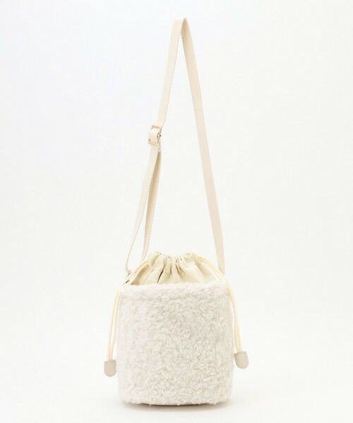 デザイン・タッチ感の良いフェイクボア素材・バケット型でコンパクトに見えながらもしっかりと荷物の入る容量・ボア素材と生地の素材コンビが軽くカジュアルな印象で使いやすい