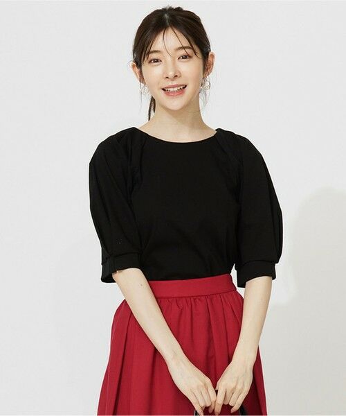 ・程よいボリュームの立体的な袖デザインで着映える・さりげなく二の腕を覆い、お洒落に体型カバー・カットソーの着心地の良さはそのままに、ブラウスのようなきちんと感をプラス・肘の稼動を邪魔しない袖口カフススリット・シャツテールデザインでインでもアウトでも決まる