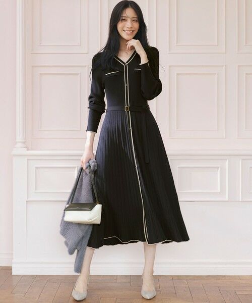 ・昨年好評をいただいたニットワンピースにベルトを追加してさらに一枚で決まるデザインに・袖口にゆとりをもたせて着心地もアップデート・モダンな印象のバイカラーデザイン・すっきりしつつも窮屈感のない身頃のリブ・スカートはフレアタイプで上品でフェミニンに
