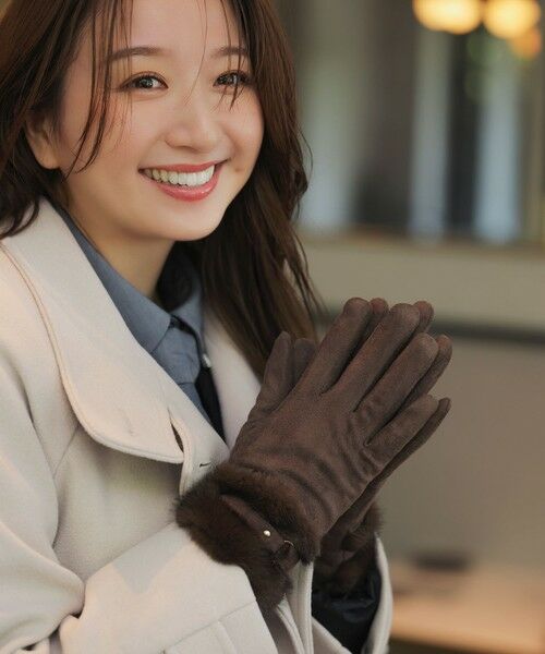 ・ベルトがポイントの上品な印象のグローブ・手触りの良いフェイクスエードとフェイクファーを使用