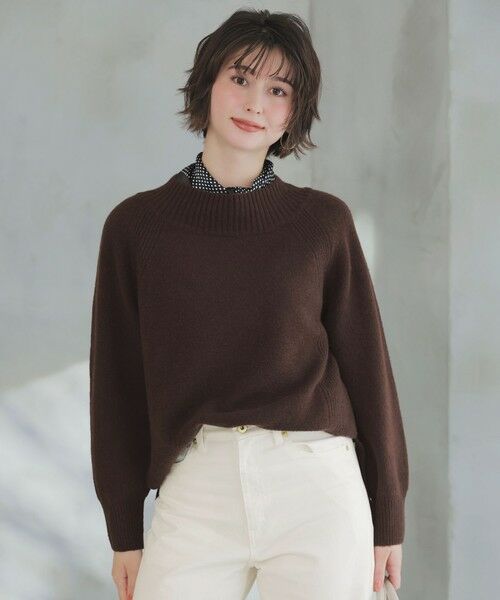 ・襟のリブがアクセントになったニットプルオーバー・身頃はややゆとりのあるサイズ感でリラックスした着心地・脇の編地切り替えがポイント・前後差のあるデザインでヒップ周りをしっかりカバー・スリット入りでどんなボトムスにも合わせやすい万能アイテム