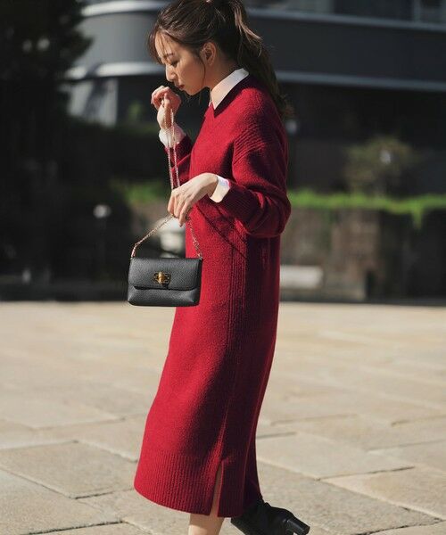 #ANYSIS #anySiS #エニシス #エニィシス #エニスィス #レディース #ニット #ワンピース #ハイネック #スリット #カジュアル #きれいめ #上品 #お出かけ #洗える #ウォッシャブル