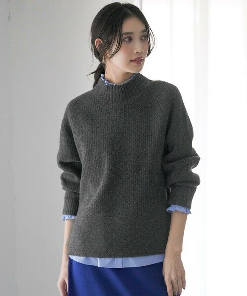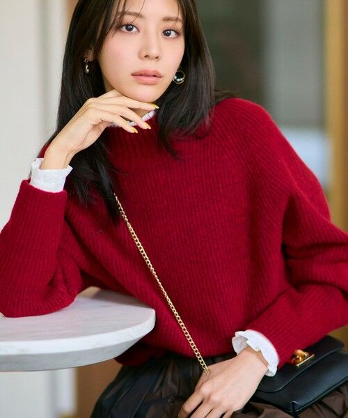 ・大人な印象に仕上がるハイネックニット・身頃はややゆとりのあるサイズ感で・立体感のある片畦編みでざっくりとカジュアル感をプラス・前後差のある着丈でヒップ周りもカバー可能・幅広いボトムスにマッチするサイドスリットデザイン・ボーダーは袖口にバイカラーラインを入れることでアクセントに
