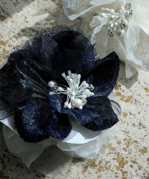 胸元にさりげない華を添えるフラワーモチーフコサージュ