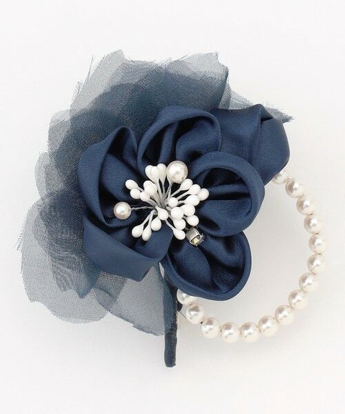 異素材感がセレモニースタイルに映える、フラワーモチーフコサージュ