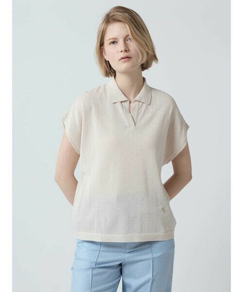 衿付きのスキッパーポロニットはカジュアルになりがちな夏のコーディネートを上品な印象にまとめてくれます。