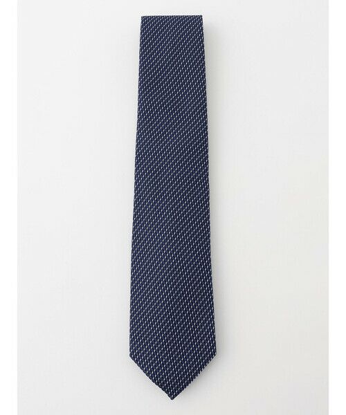 凹凸感のある組織に繊細なマイクロパターンを並べたスーツの色・柄を選ばない合わせやすいネクタイ。小剣はクレスト柄がジャガードで表現されています。