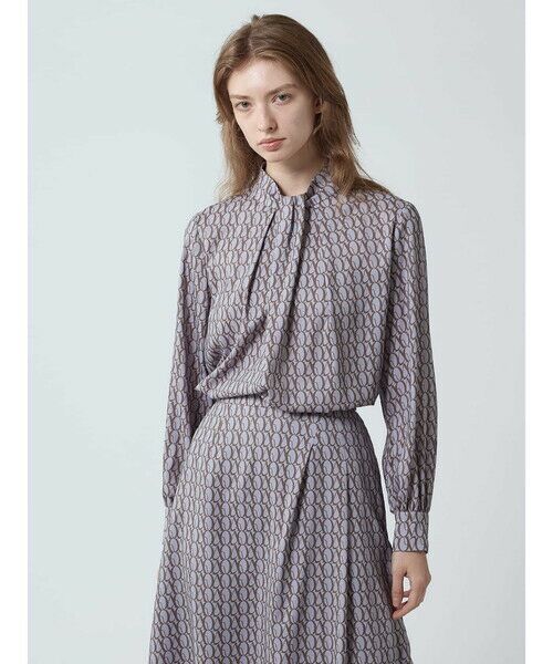 ボウタイを巻いたように立体的にお作りした衿が顔回りを華やかに仕上げてくれるブラウス。